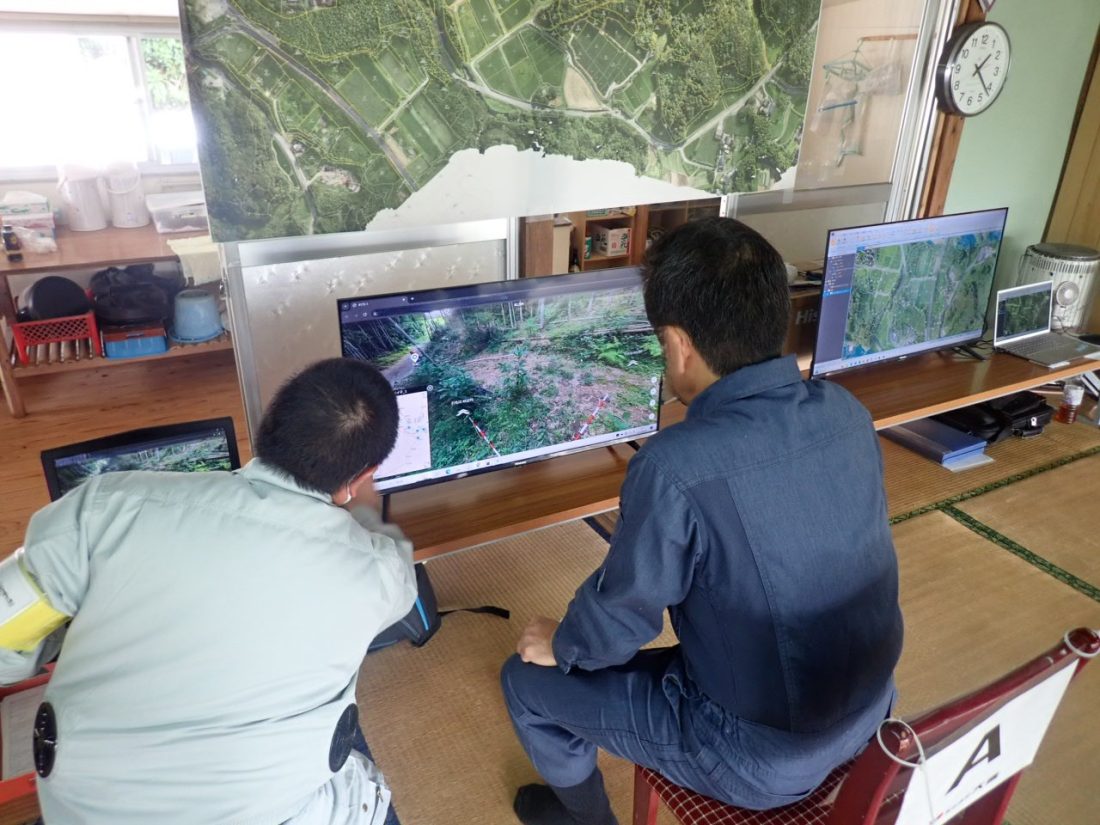 UAV、360°カメラ、動画を用いた資料を作成し、熱中症のリスク軽減や測量危険個所での境界立会等に有効活用し、関係者との土地境界に対しての理解を深めます。